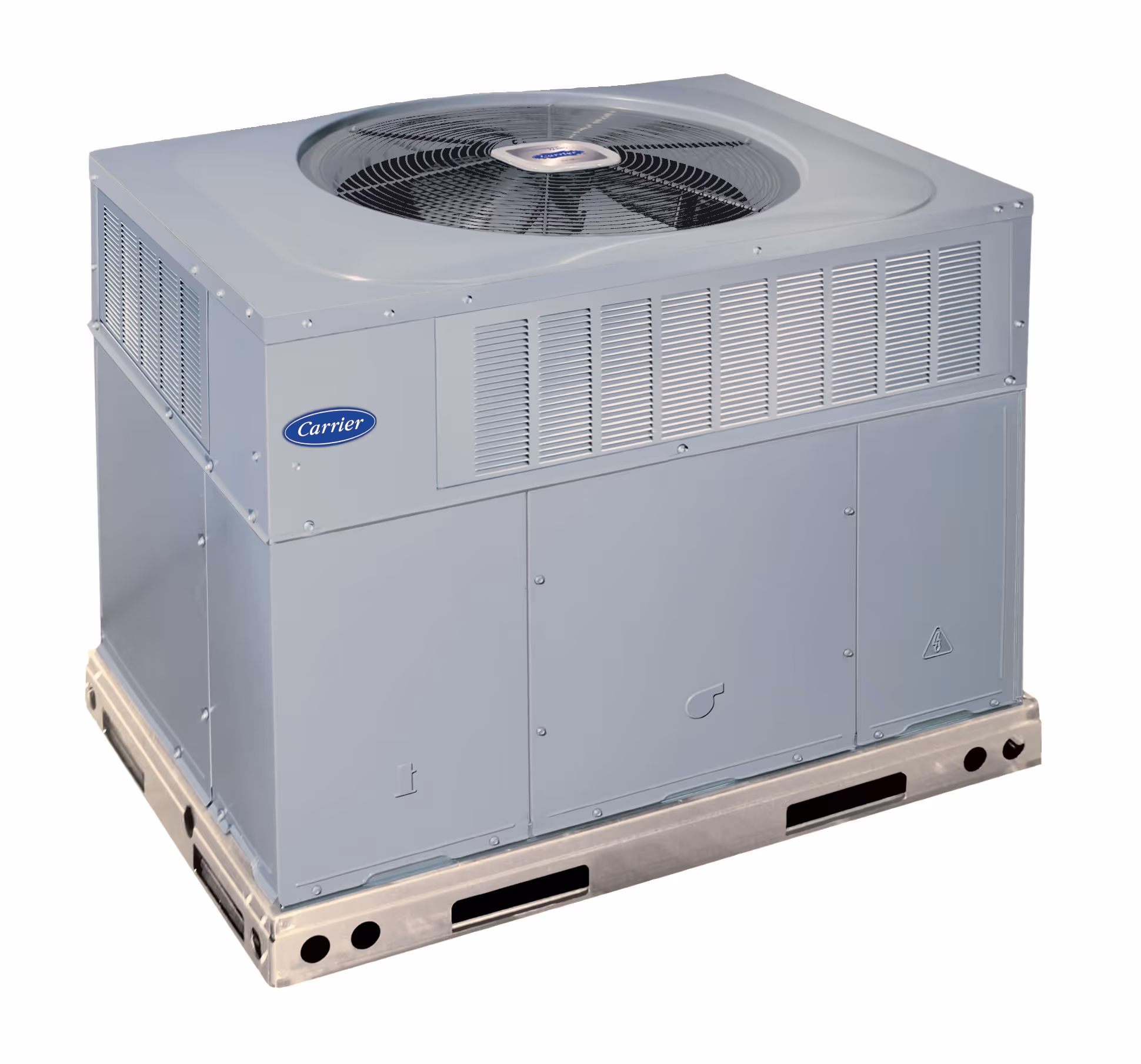 All-in-one Carrier package units combining heating and cooling in a single outdoor cabinet for easy installation.